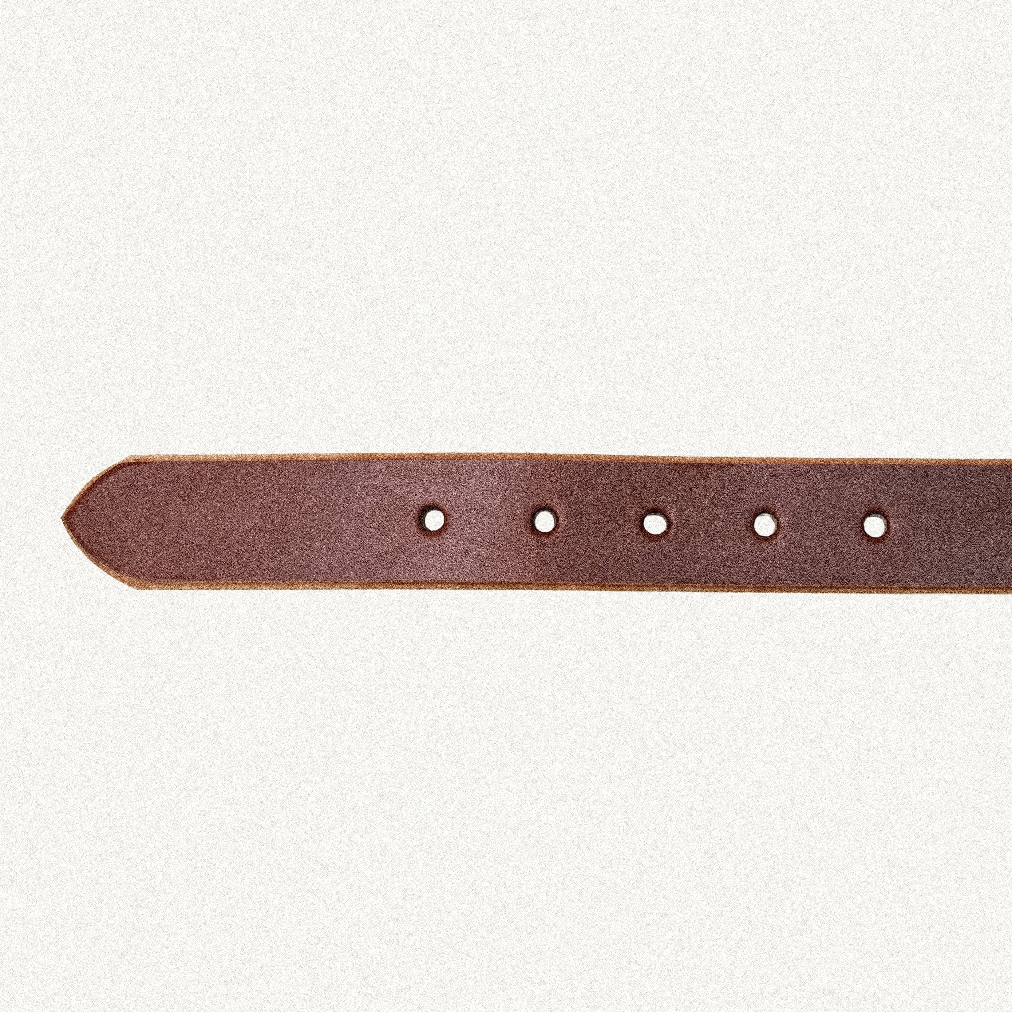 Not full-grain chrome-tanned or hybrid leather like most "high-end" belts on the market. Chrome tanning is 30x faster to make and ~4x cheaper, but far more prone to stretching. Our vegetable tanned leather takes on average 6 weeks to make.